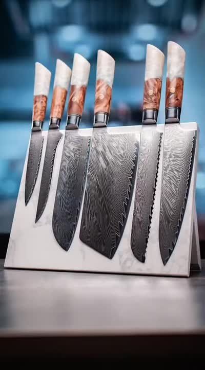 Кухонные ножи из Широгами дамасска. Серия включает 5 ножей, которые закрывают все задачи по кухне!